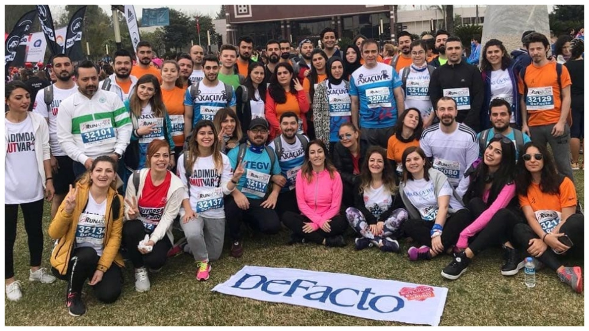 Mutluluk Elçilerimiz dün Antalya’da 63 gönüllüsüyle Ranatolia yardım koşusuna katılarak bir çok STK için bağış topladı. Tüm koşuculara ve DeFacto gönüllülerine yürekten teşekkürler 👏 Our Happiness Ambassadors in DeFacto with 63 volunteers ran in Runatolia Antalya Marathon yesterday to support civil society organization. Many thanks to all runners for their support. Also thank you so much